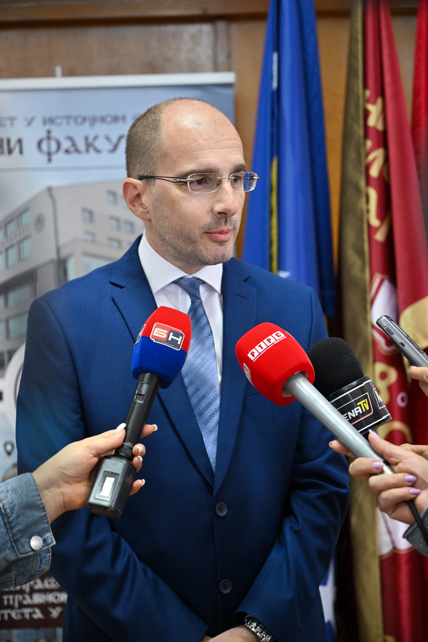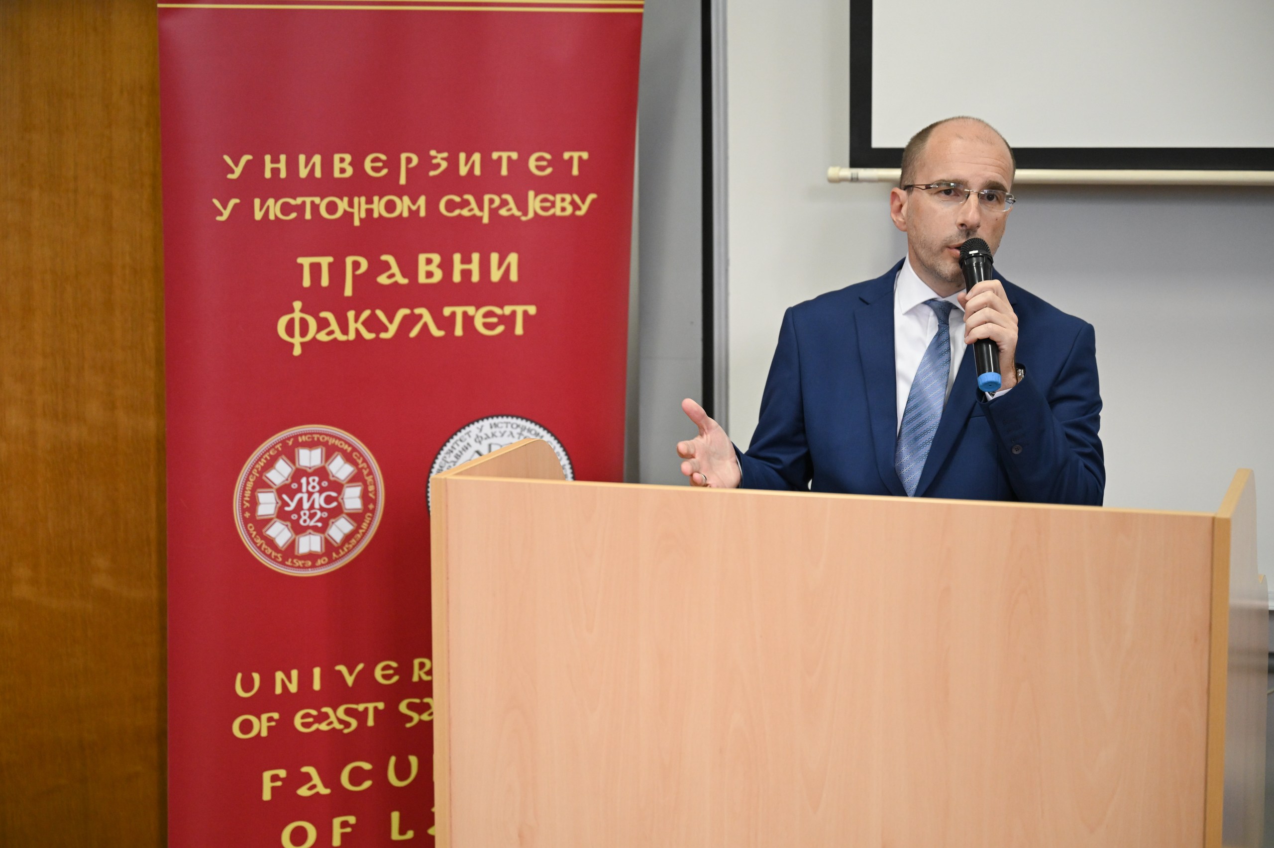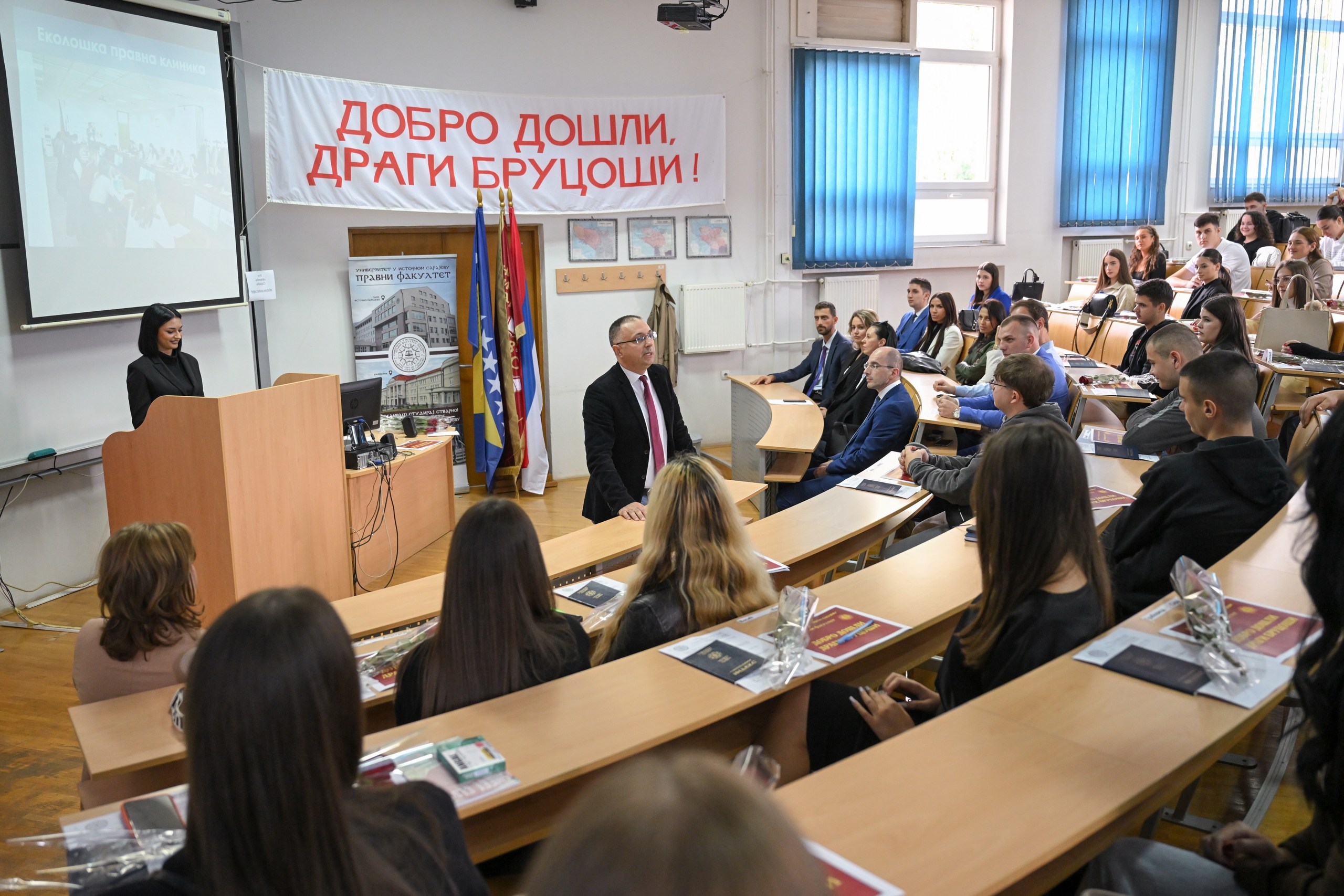 Dobrodošlicu studentima prve godine poželio je dekan Pravnog fakulteta prof. dr Goran Marković. Dekan je pohvalio izbor i težnju mladih koleginica i kolega, i ukazao na brojne načine da se studentski život obogati i preraste u zanimanje koje će budući pravnici obavljati s ljubavlju i predanošću. Ovogodišnji izvrsni rezultati upisa na Pravni fakultet i rast broja upisanih studenata u Palama i Bijeljini govore o trudu i posvećenosti svih zaposlenih ali i studenata Pravnog fakulteta. Naveo je brojne prilike za usavršavanje, poput škola, pravnih klinika, putovanja, Besjedničke sekcije, sertifikovanih programa i obuka koje Pravni fakultet priređuje za svoje studente, učešća u Erazmus+ projektima studija u Evropi i besplatnog studija na Fakultetu za evropsko pravo i upravu u Atini. Naročito je istakao korisnost prakse koja je studentima osigurana i koja se već sprovodi u brojnim pravosudnim i upravnim institucijama i advokatskim kancelarijama širom Republike Srpske.