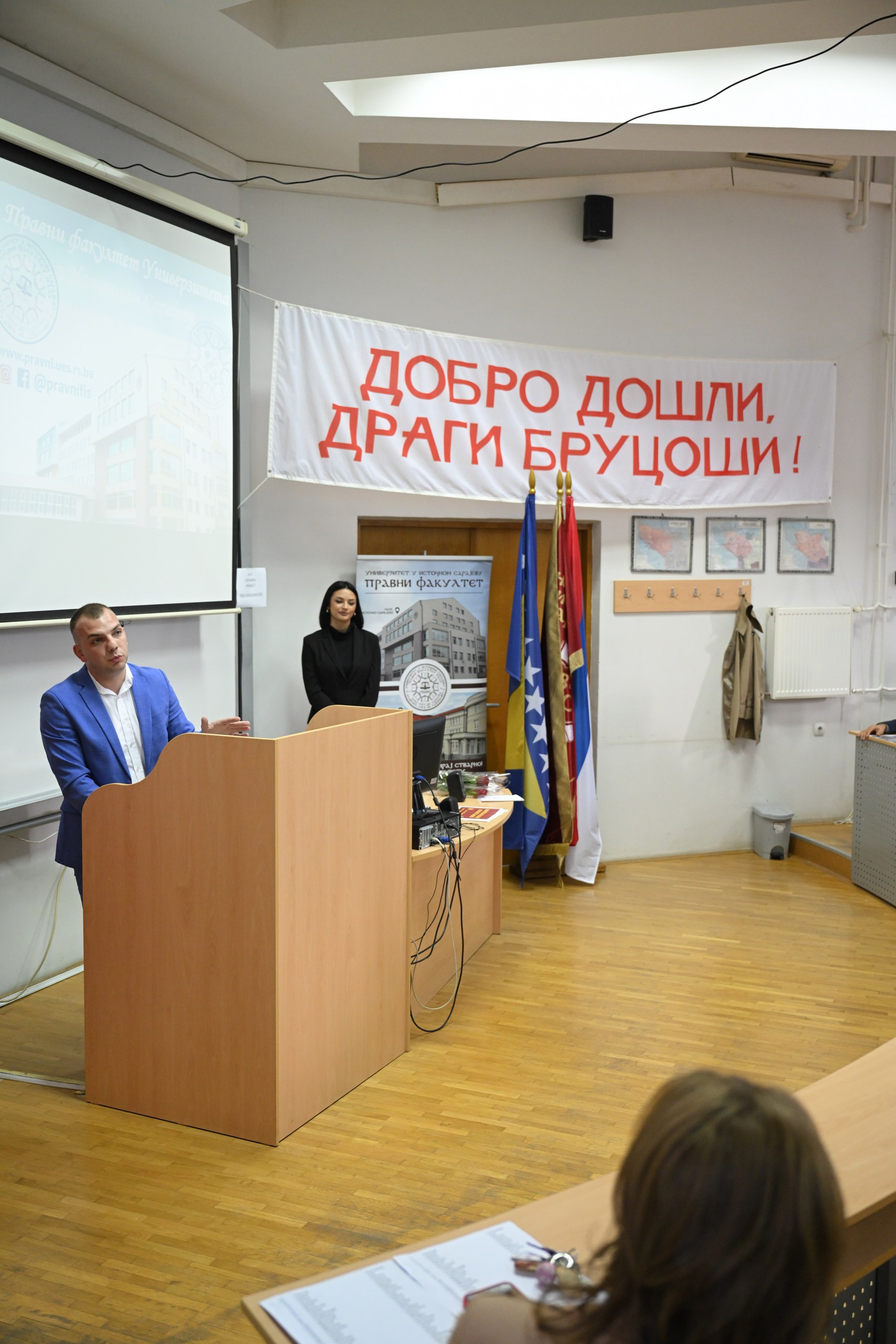 Nove kolege pozdravili su i studentski predstavnici Pravnog fakulteta. U Palama je govorio Mihailo Kovačević, potpredsjednik Udruženja studenata prava „Iustitia“ i član Studentskog parlamenta Univerziteta u Istočnom Sarajevu a u Bijeljini Andrija Dimitrić, predsjednik Udruženja studenata prava „Iustitia“ i student ombudsman Republike Srpske.