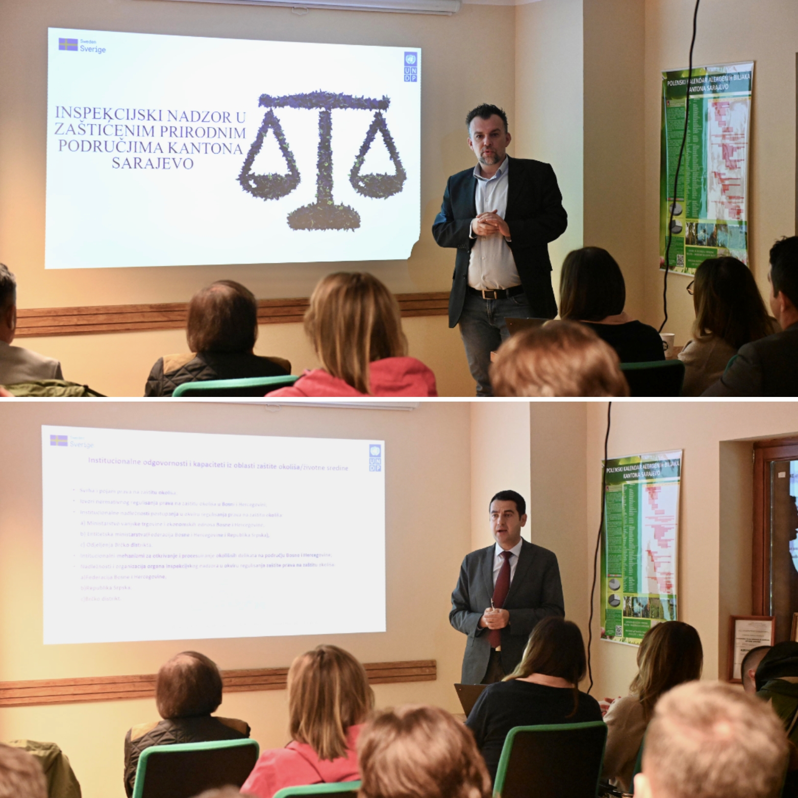 Učesnicima Radionice dobrodošlicu je poželio Asad Jelešković, direktor Kantonalne javne ustanove za zaštićena prirodna područja, koja upravlja zaštićenim područjem Bijambara. Prisutne su pozdravili Aiša Bijedić iz Švedske ambasade Sarajevo i Reno Mejer, rezidentni predstavnik UNDP-a u BiH. U prigodnom objektu Zaštićenog pejzaža „Bijambare“, gdje je Radionica održana uz obezbijeđen prevoz učesnika, predavali su još i prof. dr Amina Nikolajev sa Pravnog fakulteta Univerziteta u Sarajevu, i to o normativno-institucionalnom okviru u BiH, zatim pomoćnik ministra Kantona Sarajevo Adnan Medić, koji je govorio o inspekcijskom nadzoru u službi zaštite prirode, kao i Dženan Rovčanin, pravnik, čije izlaganje je bilo o izazovima koordinacije institucionalnih mehanizama u svrhu zaštite životne sredine.