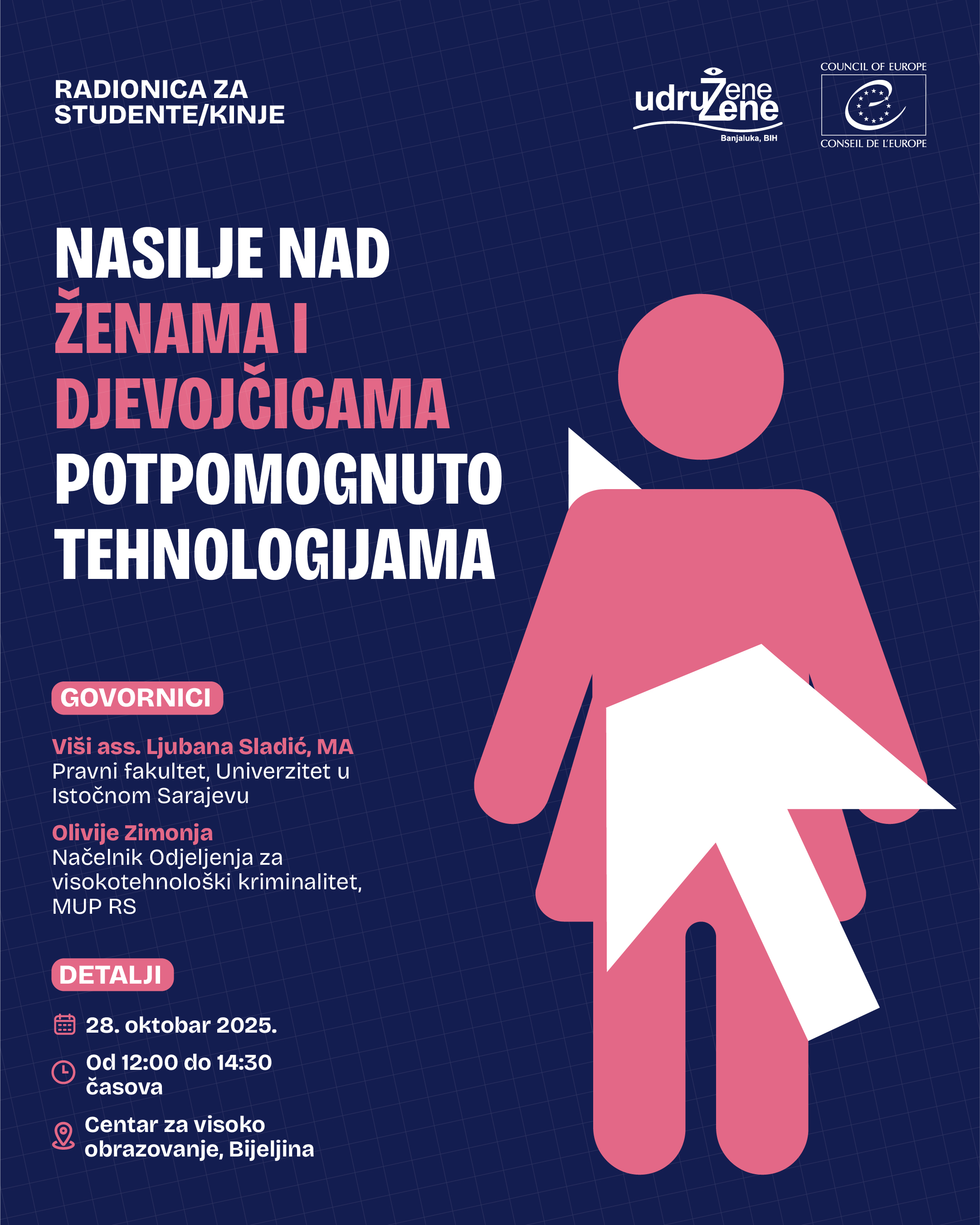 POZIV STUDENTIMA DA PRISUSTVUJU RADIONICI „NASILJE NAD ŽENAMA I DJEVOJČICAMA POTPOMOGNUTO TEHNOLOGIJAMA“