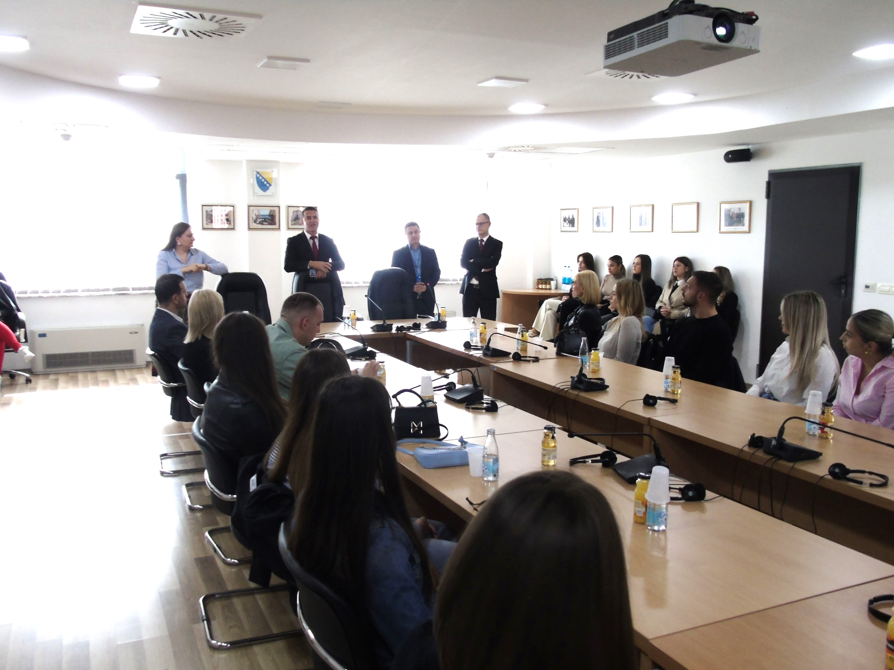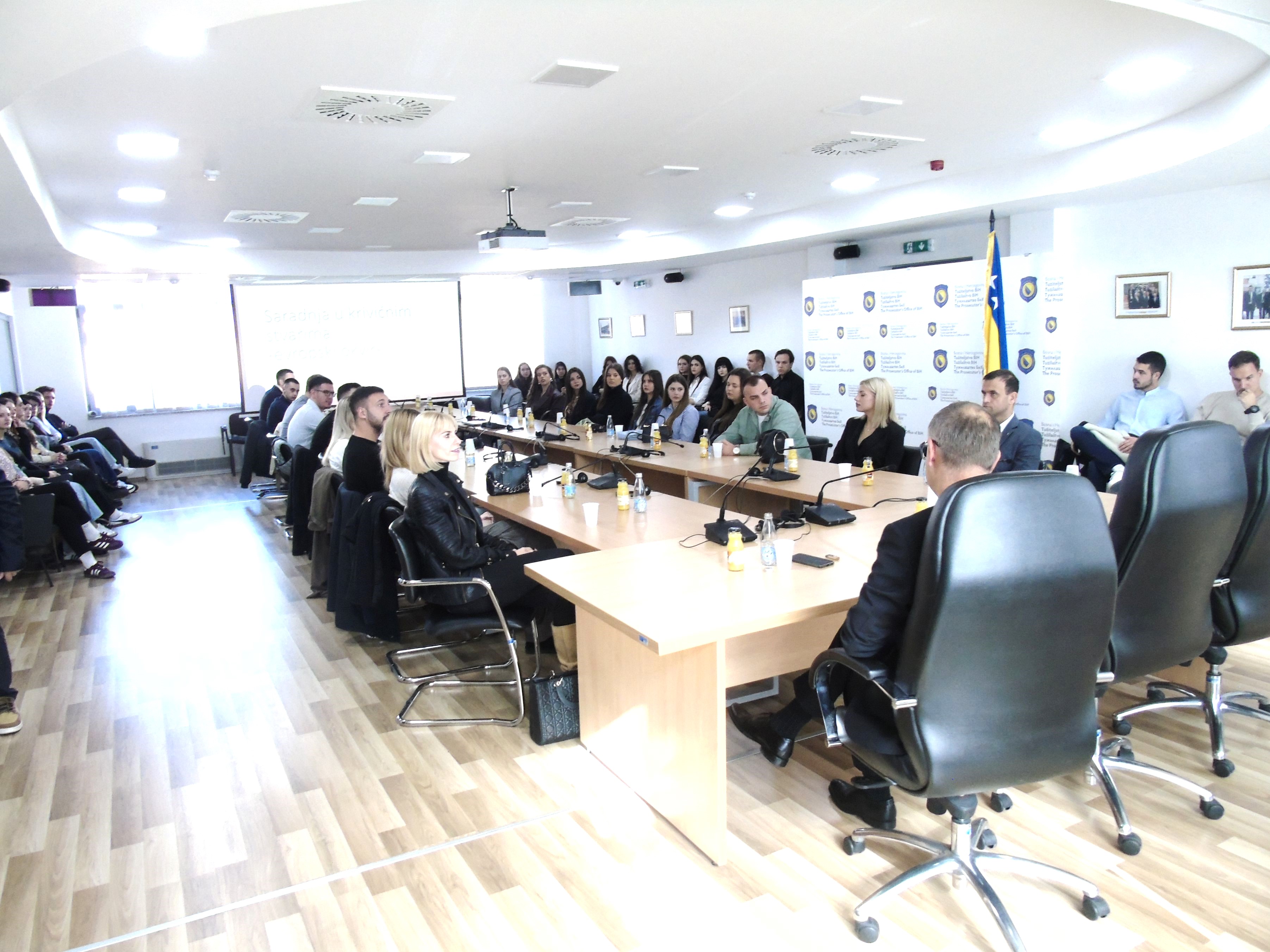 Sa studentima su razgovarali glavni tužilac Tužilaštva BiH Milanko Kajganić, tužiteljica koja je kontakt-tačka za vezu sa EUROJUST-om Sanja Ljuboje Romić i tužilac šef Odsjeka za ilegalne migracije i trgovinu ljudima, Ahmed Mešić.