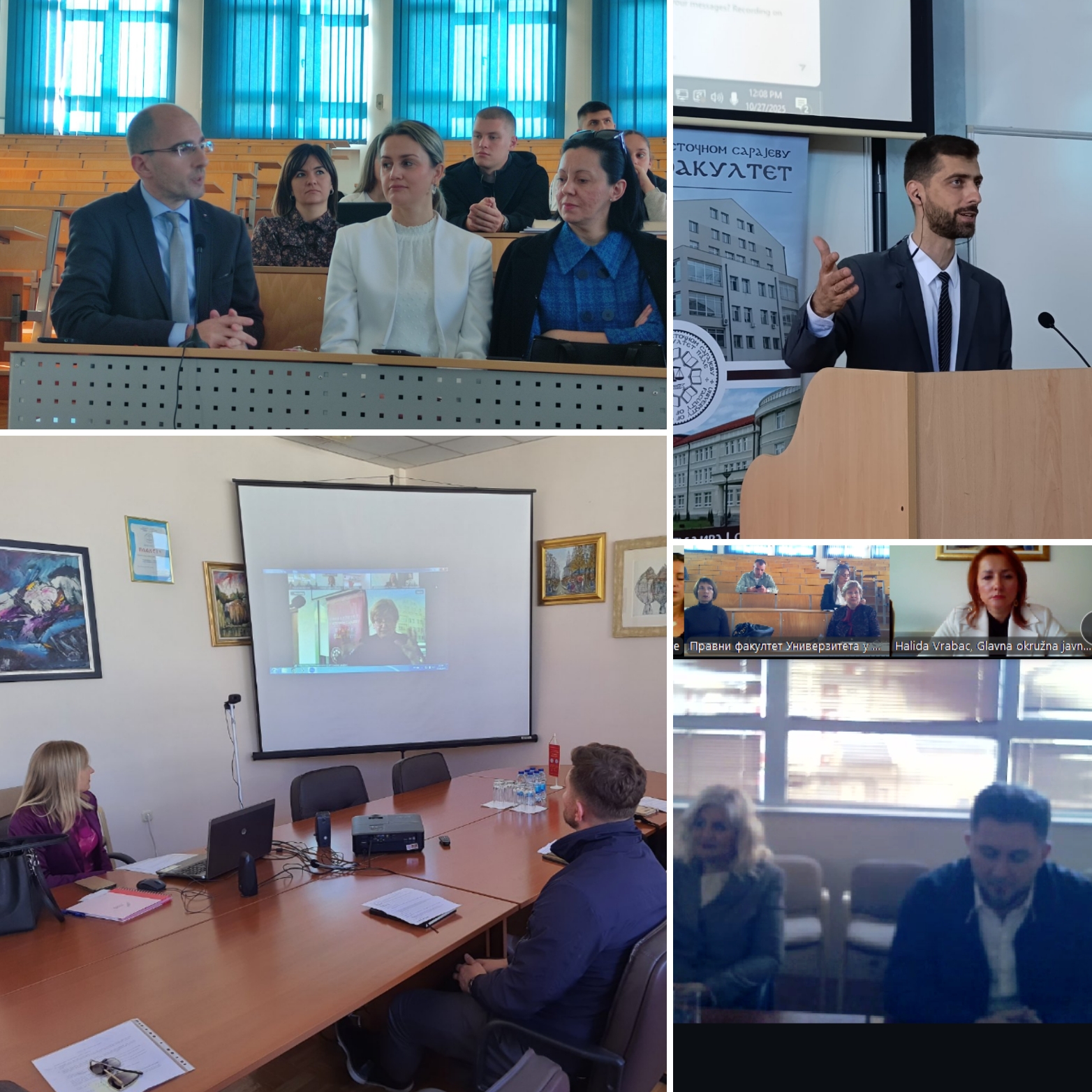 Evropski dan pravde obilježen je 27. oktobra održavanjem zajedničkog programa koji su u tri grada istovremeno održali i zajednički priredili Pravni fakultet Univerziteta u Istočnom Sarajevu, Osnovni sud u Sokocu, Osnovni sud u Bijeljini, Okružni sud u Trebinju, Okružni privredni sud u Bijeljini, Okružni privredni sud u Istočnom Sarajevu, Okružno javno tužilaštvo u Istočnom Sarajevu i Okružno javno tužilaštvo u Trebinju. Tema programa bila je „Mediji i pravosuđe“. Rad je podijeljen u dva dijela, a učesnici su prisustvovali događaju uživo u prostorijama Pravnog fakulteta u sjedištu na Palama i u odjeljenju u Bijeljini, uz istovremeni onlajn prenos i učešće pravosudnih institucija iz Palate pravde u Trebinju. Program obilježavanja Evropskog dana pravde otvorio je dekan Pravnog fakulteta prof. dr Goran Marković, koji je zahvalio pravosudnim institucijama ne samo na zajedničkoj saradnji u priređivanju ovog događaja, nego i na dugogodišnjem omogućavanju vrlo uspješne studentske prakse.