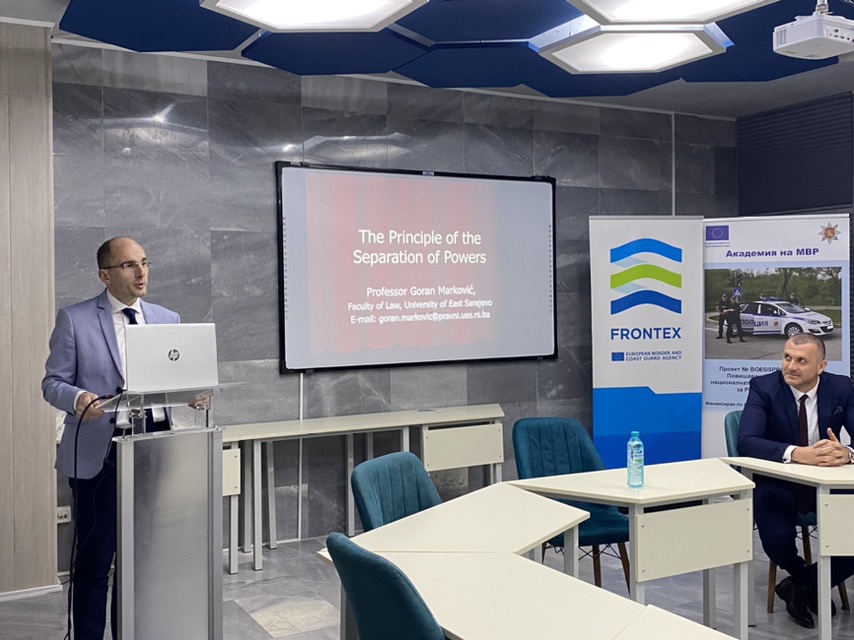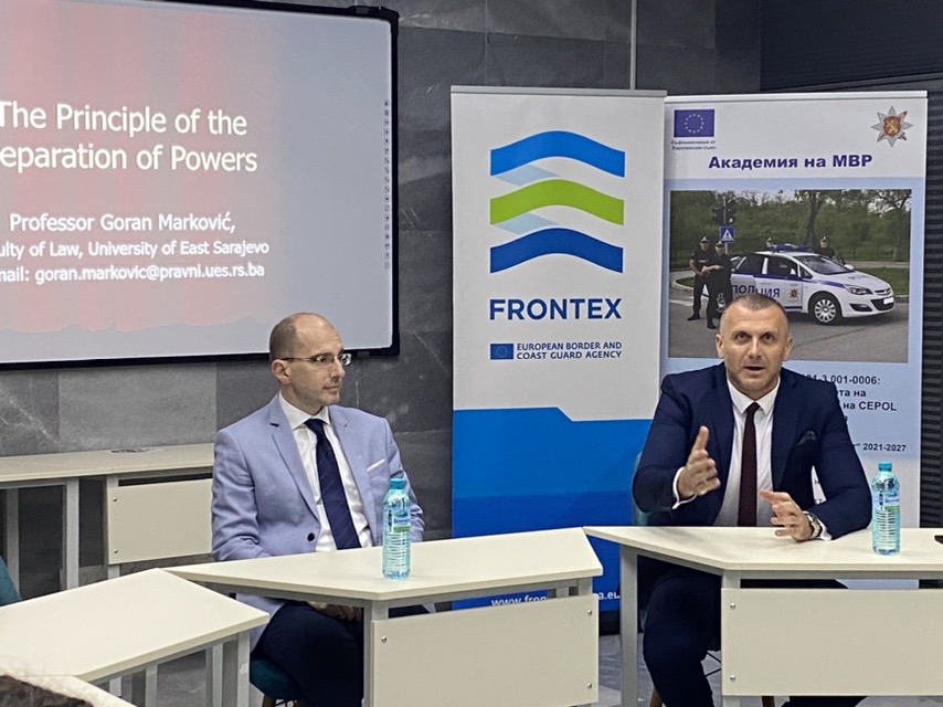 Dekan Pravnog fakulteta prof. dr Goran Marković i koordinator za CEEPUS prof. dr Radislav Lale posjetili su Akademiju Ministarstva unutrašnjih poslova u Sofiji (Republika Bugarska). Posjeta je realizovana u okviru saradnje u CEEPUS mreži, koja obezbjeđuje razmjenu nastavnika i studenata. Tokom posjete, naši profesori su razgovarali sa prof. dr Simom Mihovim, prorektorom Akademije, o mogućnostima saradnje našeg univerziteta i fakulteta sa Akademijom. Najviše se razgovaralo o saradnji u oblasti razmjene nastavnika i studenata i na planu naučno-istraživačkog rada. Potom su naši profesori održali predavanja studentima Policijskog fakulteta, koji djeluje u sastavu Akademije. Upoznali su ih sa našim univerzitetom i fakultetom, te govorili iz uporednopravne perspektive o više aspekata funkcionisanja pravnih sistema u našim zemljama.