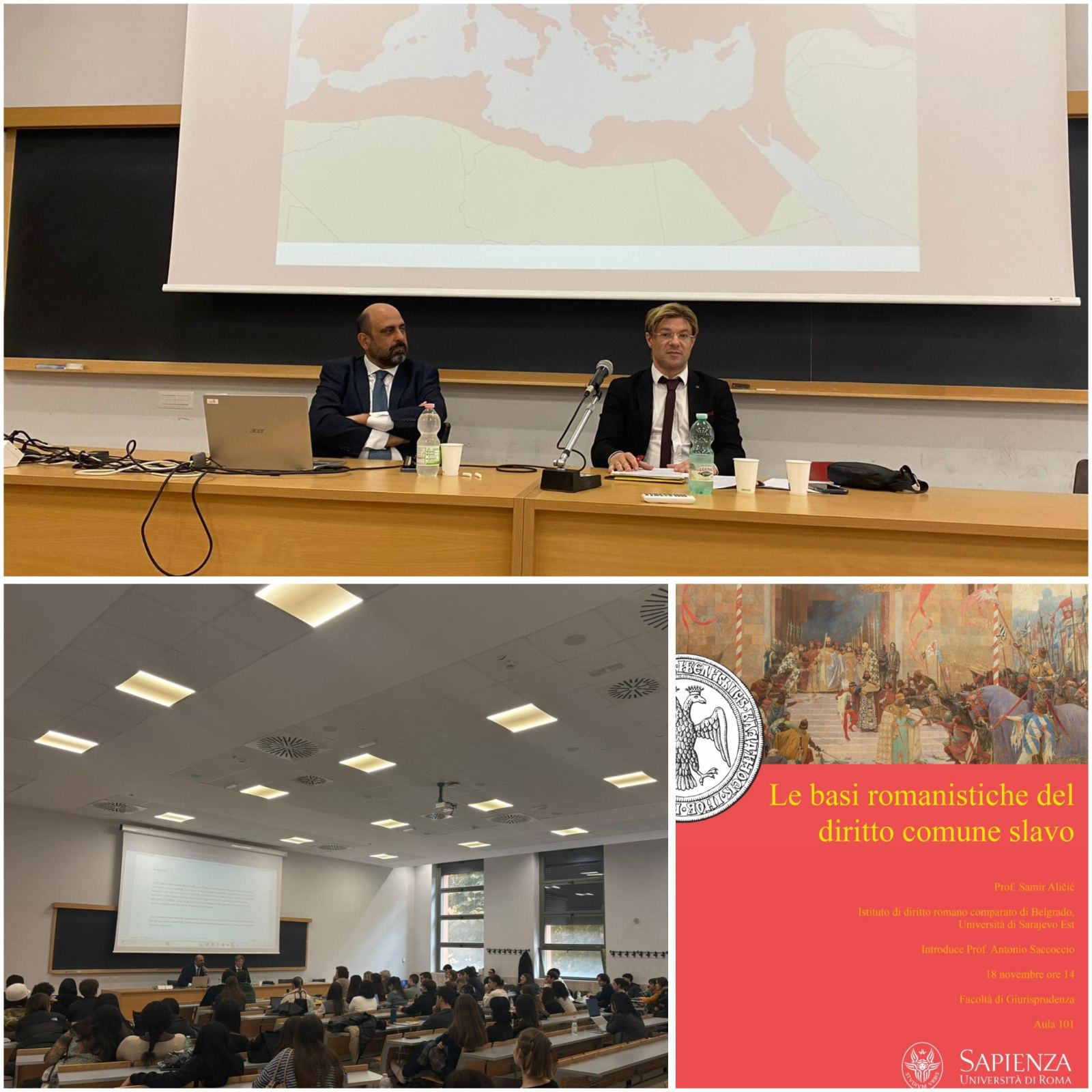 Prof. Samir Aličić, redovni profesor Pravnog fakulteta Univerziteta u Istočnom Sarajevu, održao je u utorak, 18. novembra 2025. godine, predavanje na Pravnom Univerziteta "La Sapienza" u Rimu. Predavanje na temu uticaja rimskog prava na razvoj prava u zemljama bivše Jugoslavije, uz uvod Antonija Sakoća, redovnog profesora Pravnog fakulteta Univerziteta "La Sapienza", izazvalo je veliko interesovanje i održano je uz prisustvo većeg broja kako studenata tako i nastavnika. "La Sapienza" je najstariji rimski univerzitet, osnovan 1303. godine, i sa preko 120.000 studenata je najveći univerzitet u Evropi.