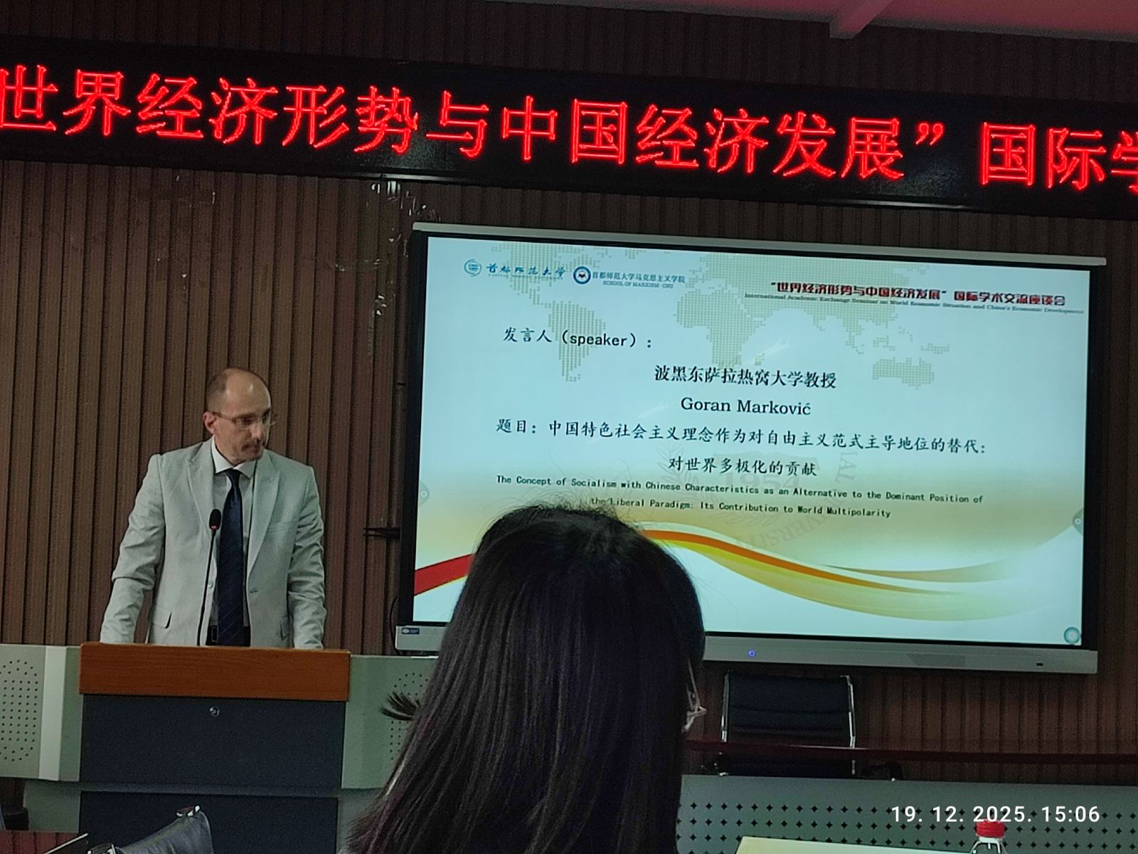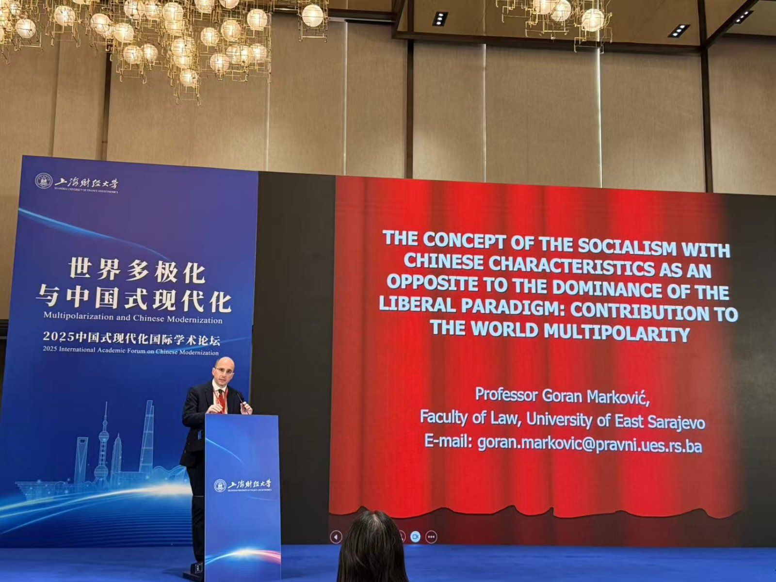 Dekan Pravnog fakulteta prof. dr Goran Marković realizovao je studijski boravak u Narodnoj Republici Kini. Na poziv urednika časopisa International Critical Thought, sa kojim sarađuje, i World Marxist Review, u čijoj redakciji se nalazi, učestvovao je u Šangaju na međunarodnoj naučnoj konferenciji na temu „Multipolarnost i kineska modernizacija“, koju je organizovao Šangajski univerzitet za finansije i ekonomiju (SUFE), u saradnji sa Svjetskom asocijacijom za političku ekonomiju (WAPE). Osim učešća u radu konferencije u svojstvu referenta, prof. Marković je dao intervju za International Financial Times i imao razgovore sa predstavnicima SUFE i Fakulteta za marksizam istog univerziteta.