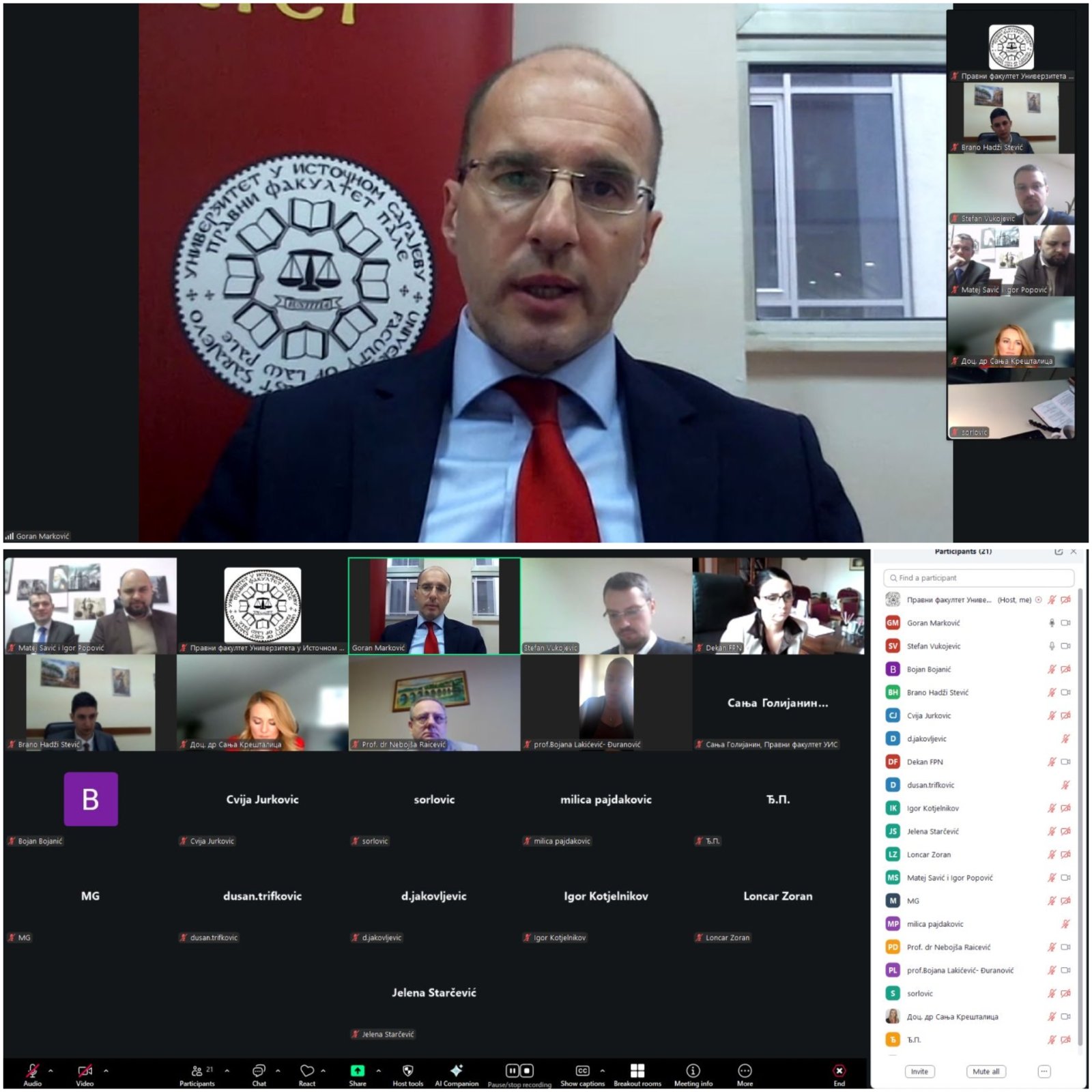Na Pravnom fakultetu je održan okrugli sto na temu „Reforma izbornog zakonodavstva u Bosni i Hercegovini: Jačanje institucionalne legitimnosti“. Na njemu je uzelo učešće 25 učesnika, kako iz akademske zajednice (pravni fakulteti u Istočnom Sarajevu, Banjoj Luci, Nišu, Novom Sadu, Podgorici, Mostaru, te Filozofski fakultet u Istočnom Sarajevu i Fakultet političkih nauka u Banjoj Luci), tako i iz institucija sa različitih nivoa vlasti u Bosni i Hercegovini.