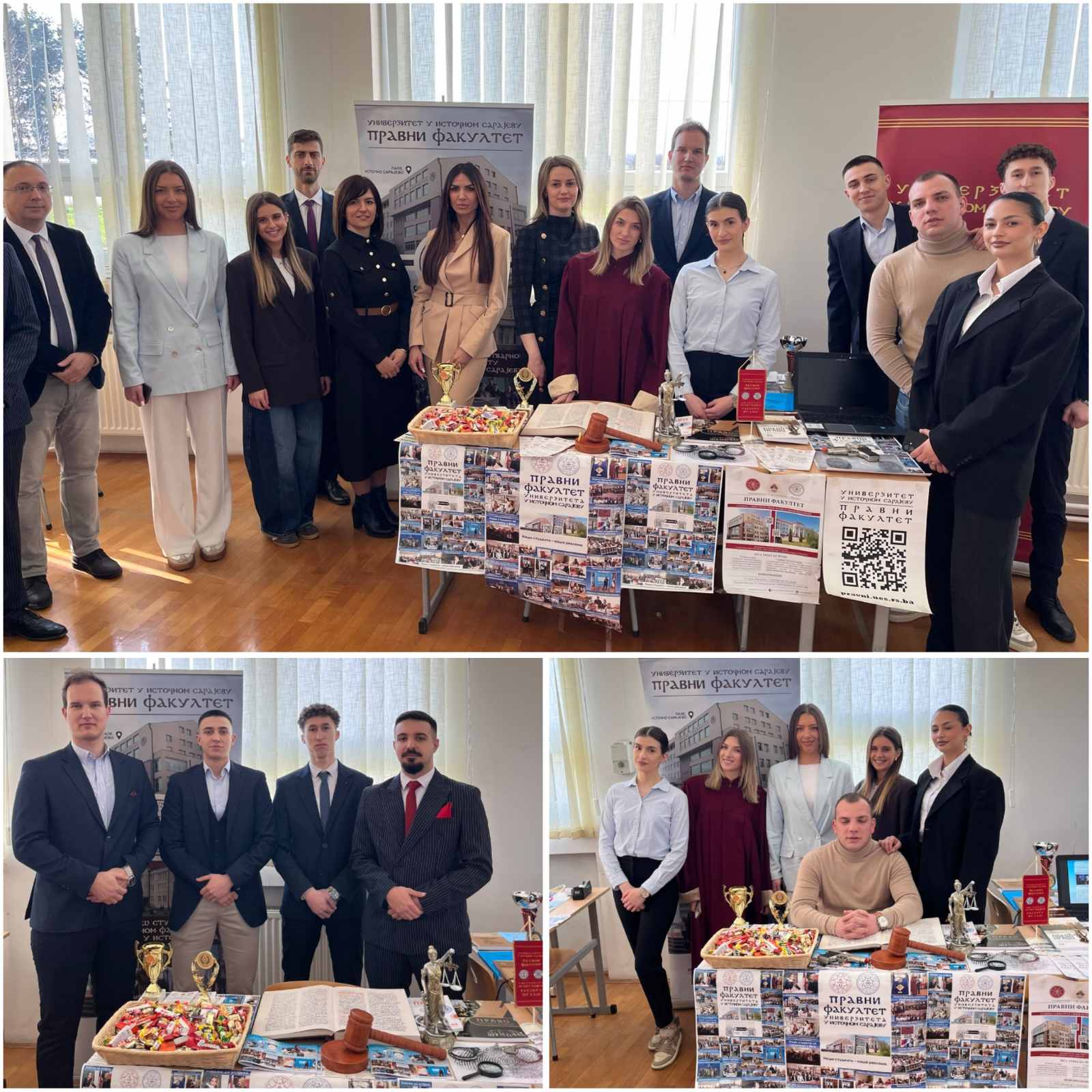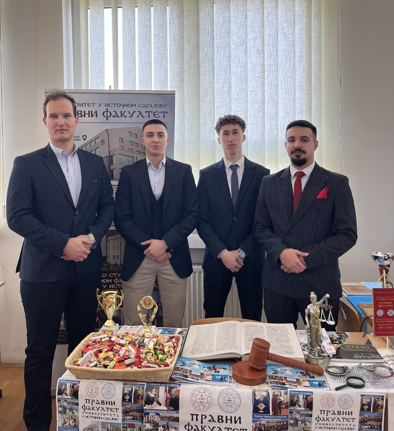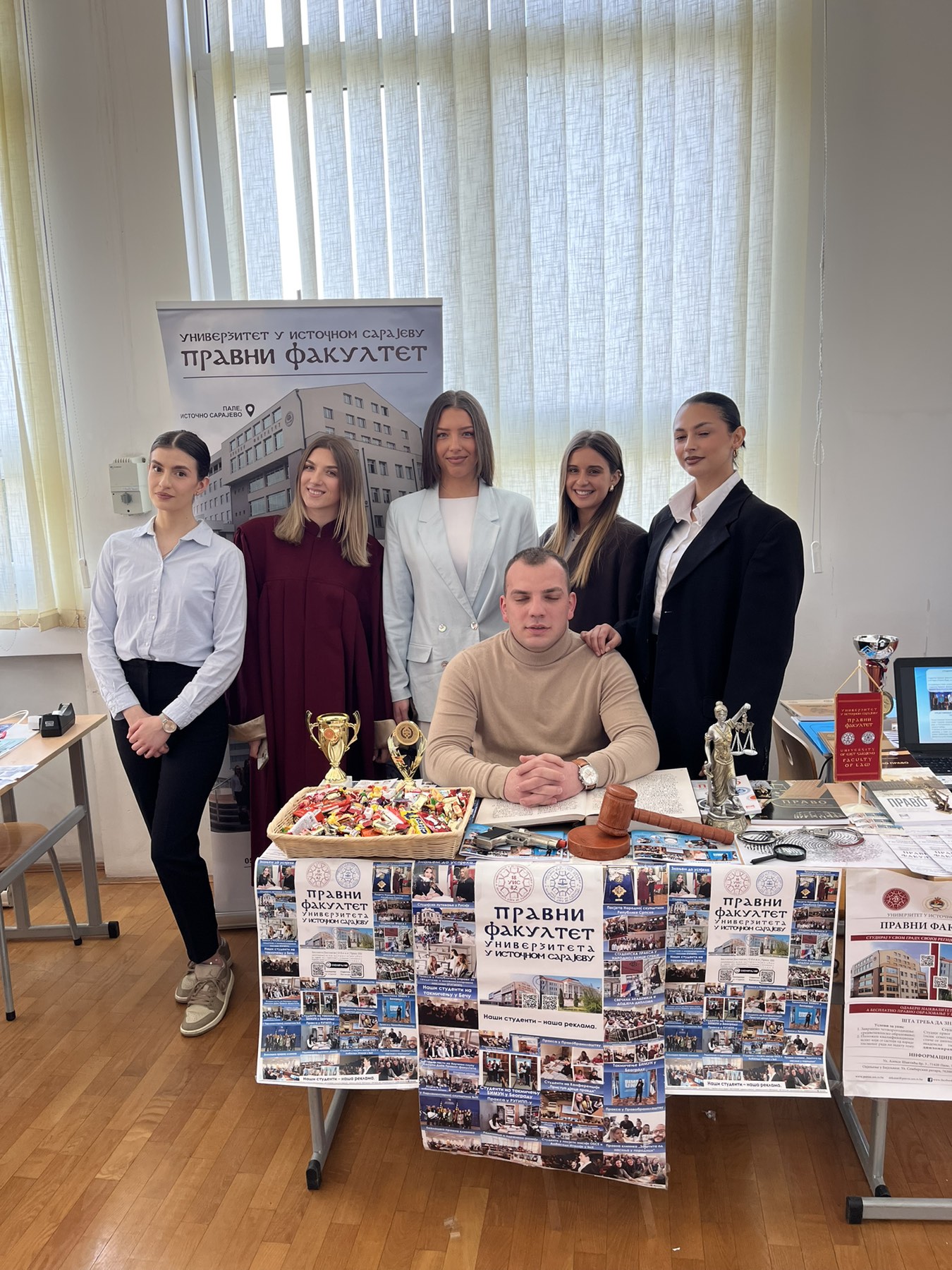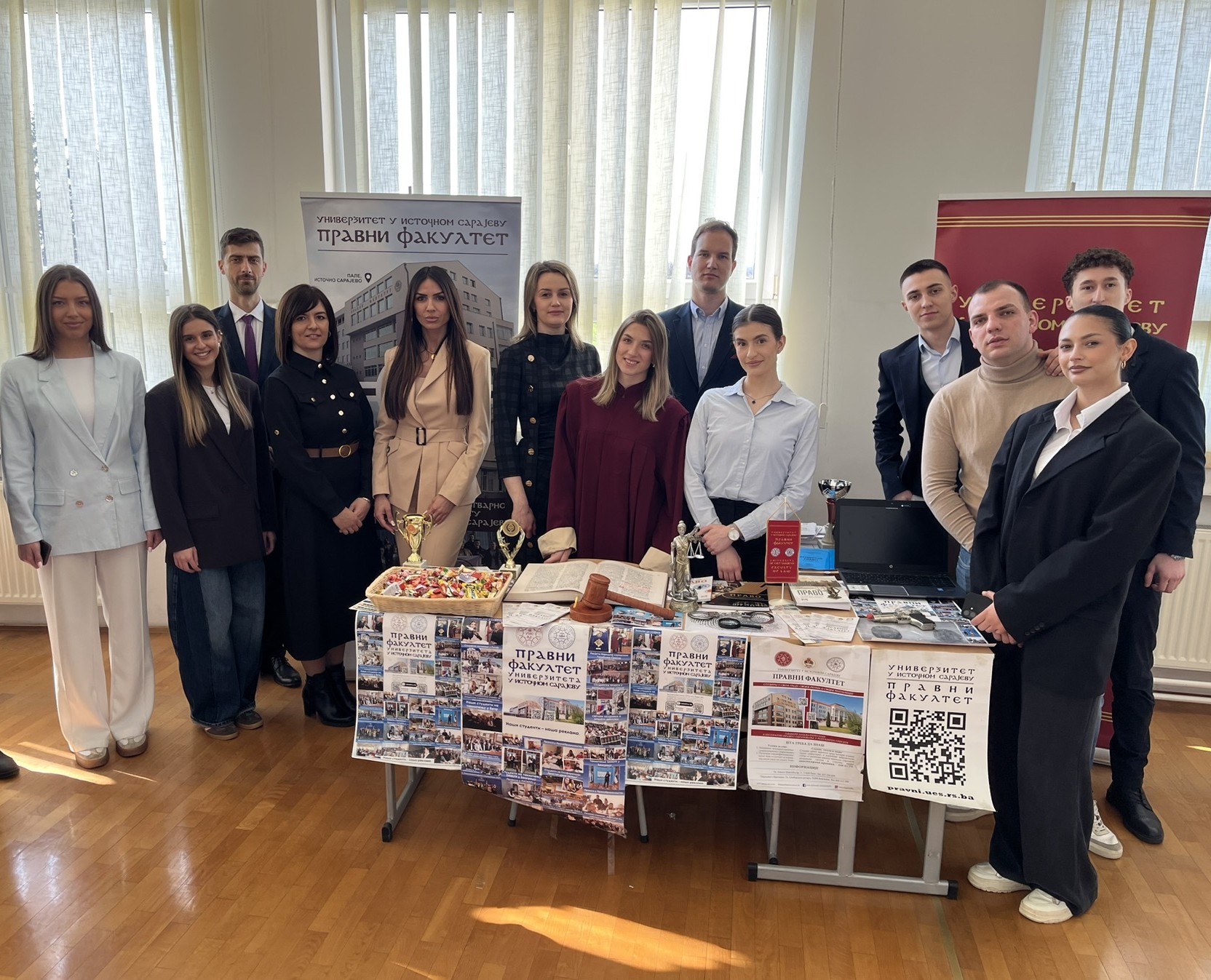 Pravni fakultet je takođe imao svoje predstavnike, nastavnike, saradnike i studente, koji su predočili učenicima sve pogodnosti koje fakultet nudi. Prije svega, besplatno školovanje i besplatan smještaj u studentskim domovima za sve studente državljane Republike Srspke i Republike Srbije. Zatim, obilje studentske prakse, saradnja sa pravosudnim institucijama, studentske razmjene, saradnja sa univerzitetima u inostranstvu, besplatno studiranje na Fakultetu evropskog prava i javne uprave u Atini itd. Naš moto je da se posao traži tokom studiranja, a ne kad se stekne diploma, o čemu svjedoče brojni primjeri naših bivših studenata koji su prepoznati i priznati na tržištu rada.