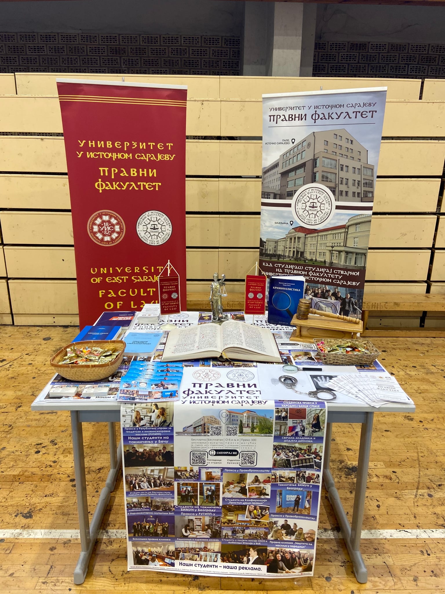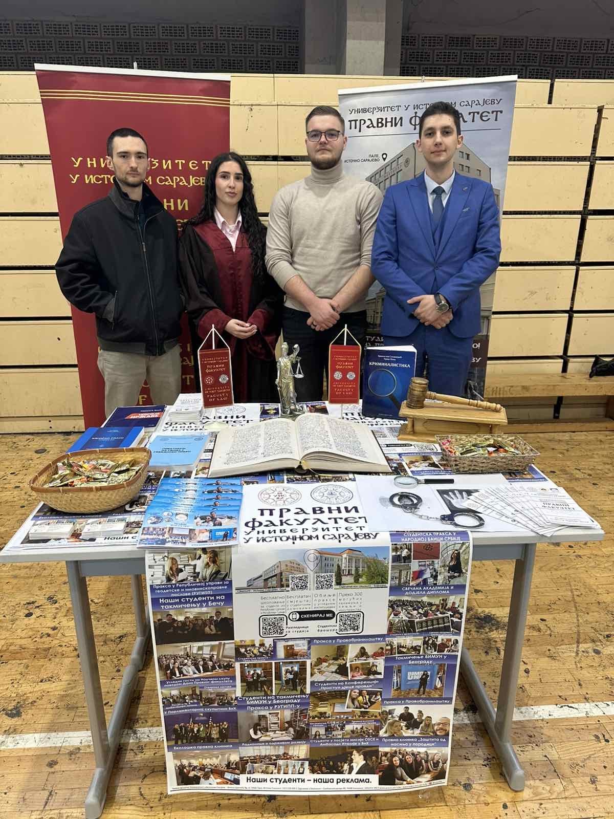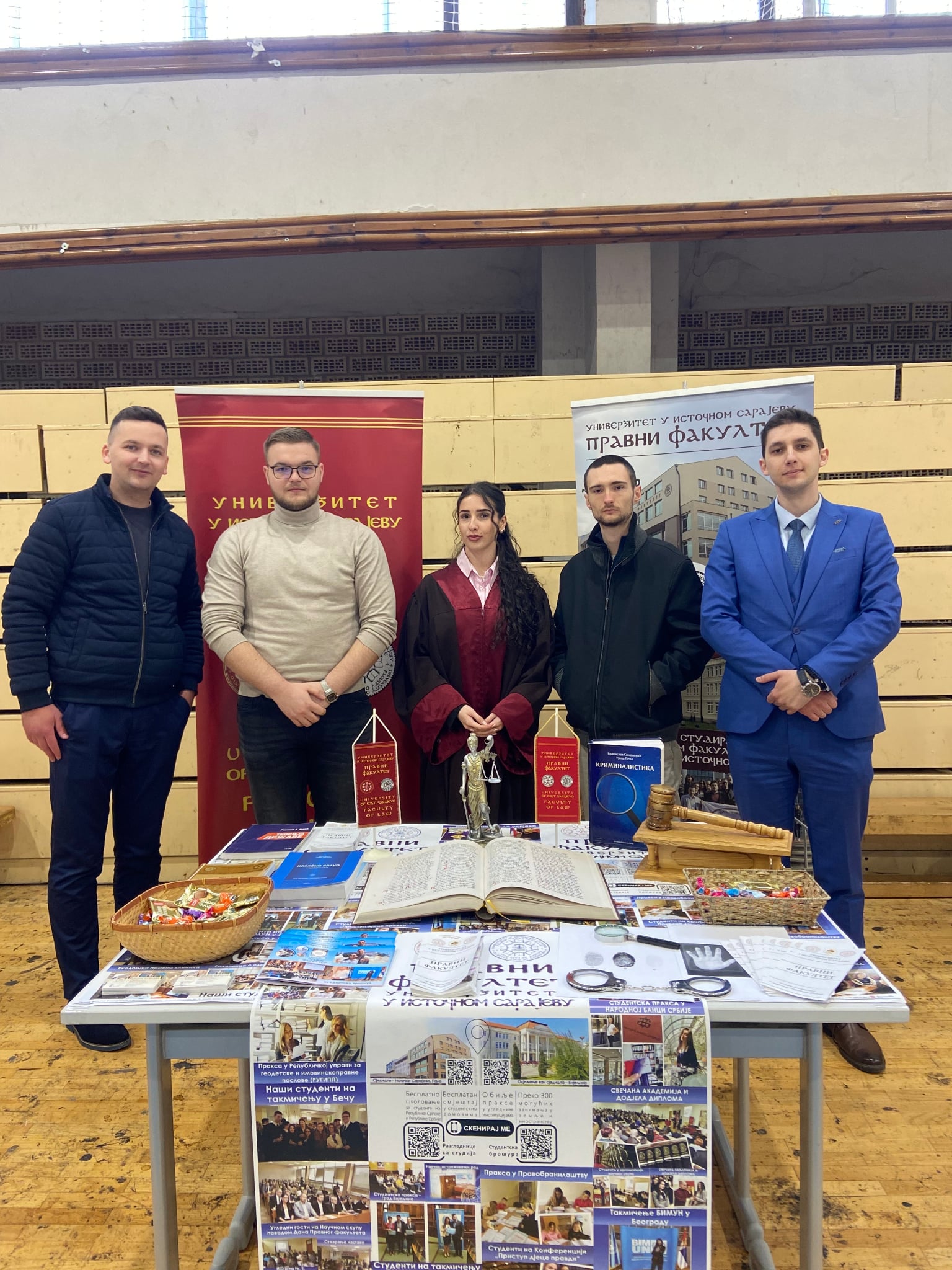 Predstavnici Pravnog fakulteta na Danu otvorenih vrata su bili doc. dr Brano Hadži Stević, Nikola Čorlija, diplomirani pravnik (bivši student Pravnog fakulteta, a trenutno pripravnik u Osnovnom sudu u Trebinju), te studenti Nevena Bojanić, Lazar Ilić i Filip Šupić. Oni su budućim brucošima ukazali na prednosti studiranja na našem fakultetu, kao što su besplatna školarina, besplatan smještaj u studentskom domu, mogućnost obavljanja studentske prakse, učešće u studentskim razmjenama.