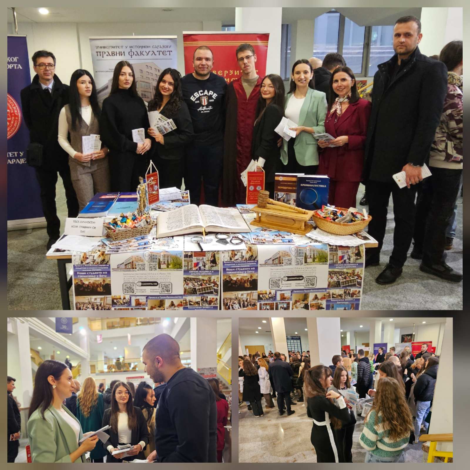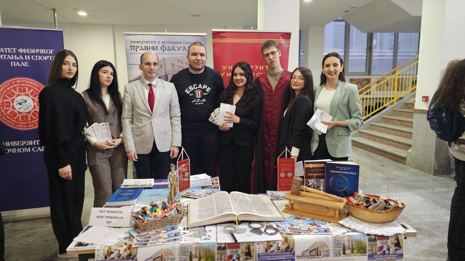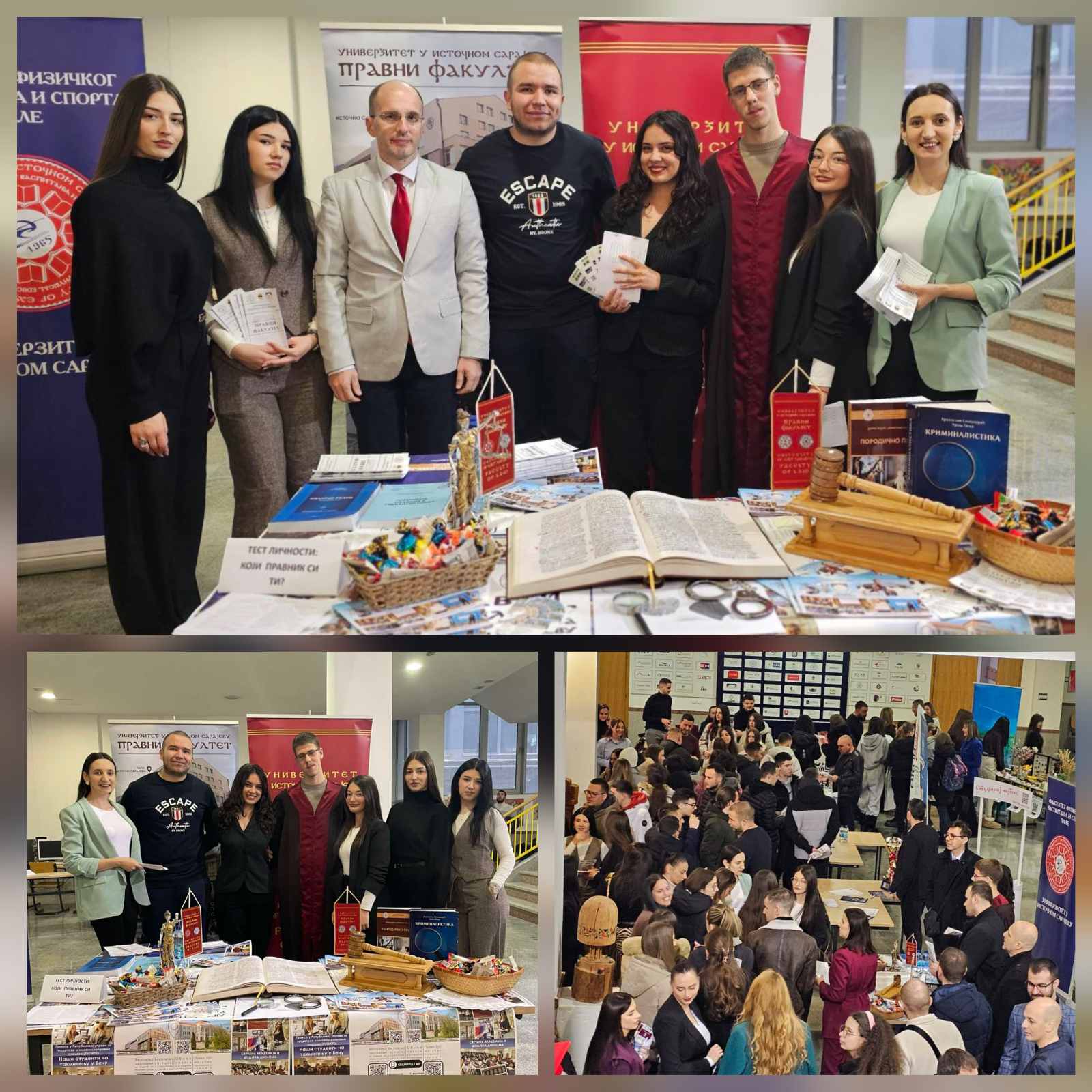 Štand našeg fakulteta privukao je pažnju velikog broja učenika koji su pokazali izraženo interesovanje za studije prava. Srednjoškolci su se bliže upoznali sa brojnim pogodnostima koje naš fakultet nudi, među kojima su besplatno školovanje, besplatan smještaj u studentskim domovima, mogućnost obavljanja studentske prakse, učešće u studentskim razmjenama, putovanjima, pravnim klinikama i simulacijama suđenja.