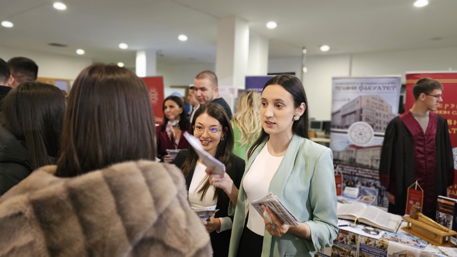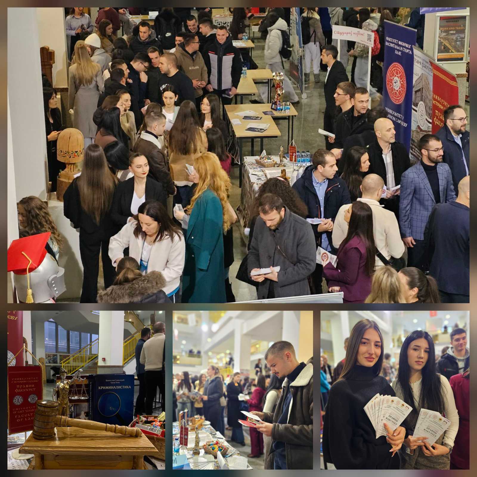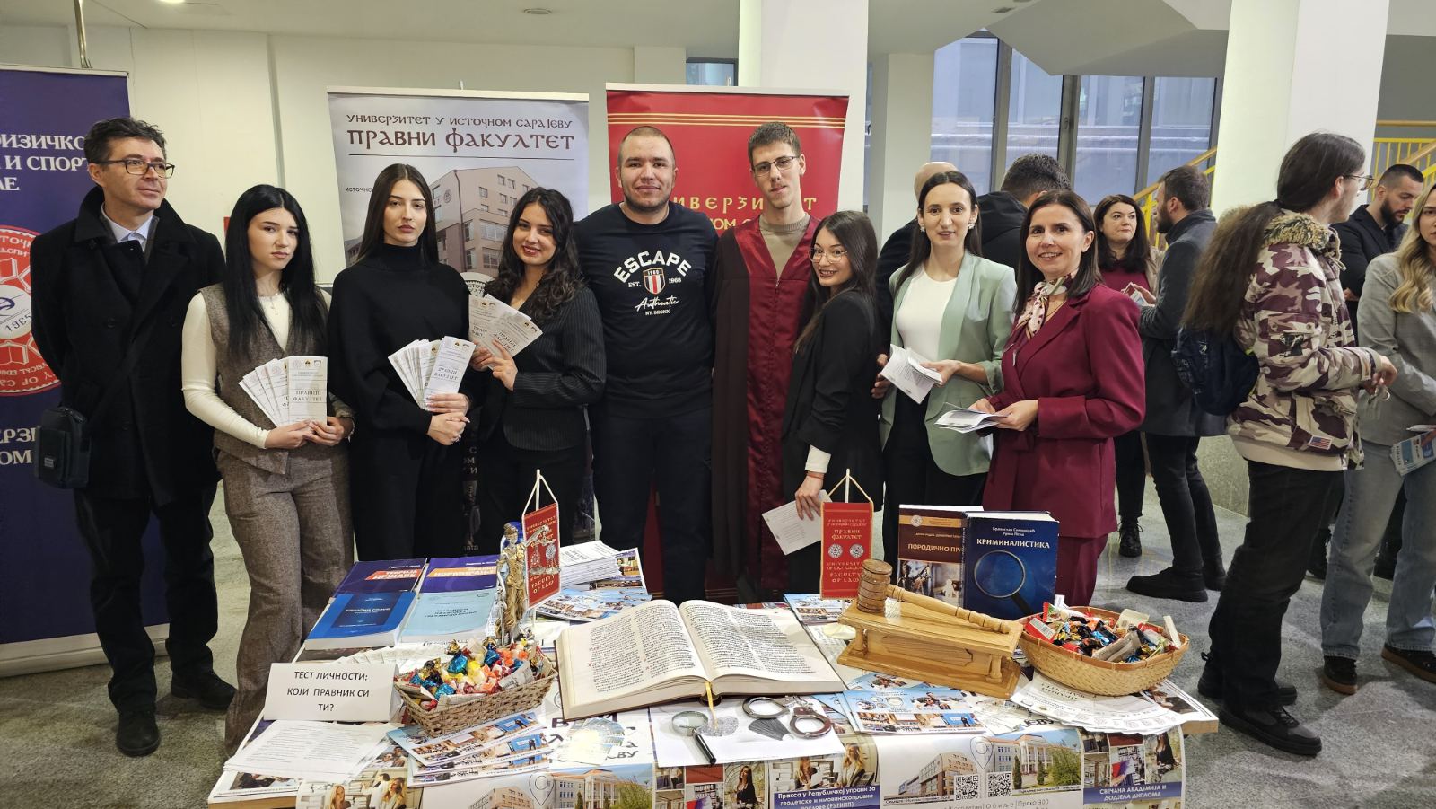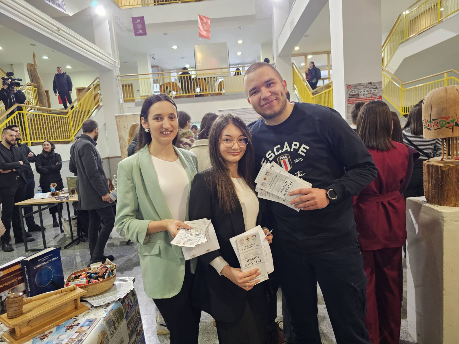 Štand našeg fakulteta privukao je pažnju velikog broja učenika koji su pokazali izraženo interesovanje za studije prava. Srednjoškolci su se bliže upoznali sa brojnim pogodnostima koje naš fakultet nudi, među kojima su besplatno školovanje, besplatan smještaj u studentskim domovima, mogućnost obavljanja studentske prakse, učešće u studentskim razmjenama, putovanjima, pravnim klinikama i simulacijama suđenja.