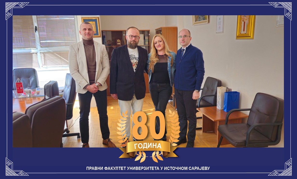 Pravni fakultet Univerziteta u Istočnom Sarajevu posjetili prof. dr Ivica Kelam, sa Fakulteta za dentalnu medicinu i zdravlje Univerziteta Josip Juraj Strossmayer u Osijeku, i prof. dr Darija Rupčić Kelam, sa Filozofskog fakulteta Univerziteta Josip Juraj Strossmayer u Osijeku, u okviru CEEPUS programa mobilnosti. Ugostili su ih dekan Pravnog fakulteta, prof. dr Goran Marković i prof. dr Radislav Lale, koordinator za CEEPUS. Na sastanku je bilo riječi o razvijanju različitih oblika saradnje između visokoškolskih ustanova, zajedničkom učešću u Erasmus projektima, kao unapređenju mobilnosti nastavnog osoblja i studenata.