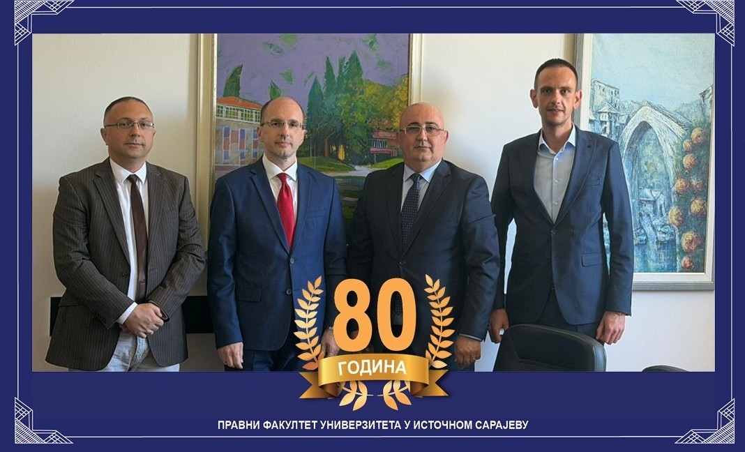 Predstavnici našeg fakulteta, dekan prof. dr Goran Marković i prodekan za naučno-istraživački rad prof. dr Dimitrije Ćeranić, posjetili su Pravni fakultet Sveučilišta u Mostaru. Primili su ih v.d. dekana prof. dr Zlatko Brkić i prodekan za nastavu i studentska pitanja doc. dr Ivan Tomić. U srdačnom i prijateljskom razgovoru, predstavnici dva fakulteta razgovarali su o nizu pitanja koja se tiču saradnje u oblasti nastave, naučno-istraživačkog rada, izdavačke djelatnosti i dr. Fakulteti se suočavaju sa istovjetnim ili vrlo sličnim izazovima, a posebno nas raduje što na istovjetne načine reagujemo na njih.
