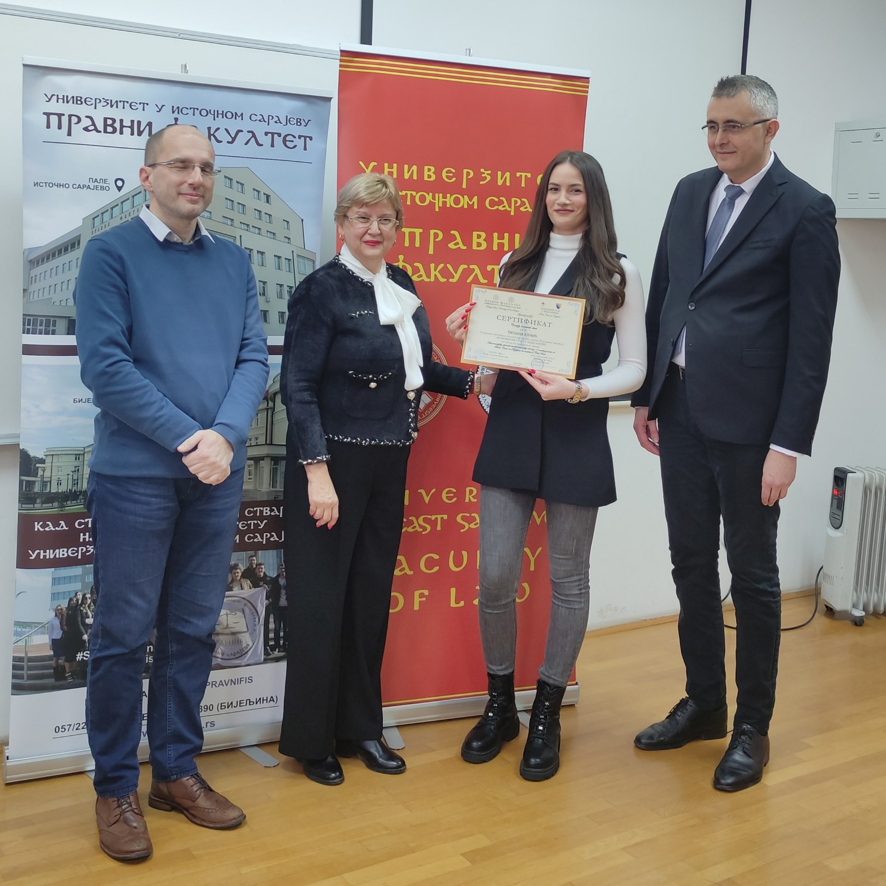 Studentima Pravnog fakulteta koji su obavili petnaestodnevnu praksu u Republičkoj upravi za geodetske i imovinsko-pravne poslove (RUGIPP) dodijeljeni su sertifikati u Palama i u Bijeljini. Sertifikate su dodijelili dekan prof. dr Goran Marković, pomoćnik direktora za pravne, kadrovske i opšte poslove RUGIPP-a g. Boris Krčmar i prodekan prof. dr Dimitrije Ćeranić.